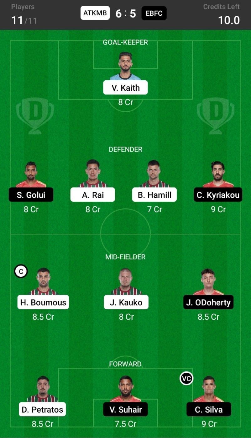 Fantasy Suggestion #2: Vishal Kaith, Sarthak Golui, Charis Kyriakou, Brendan Hamill, Asish Rai, Hugo Boumous, Joni Kauko, Jordan O'Doherty, VP Suhair, Cleiton Silva, and Dimitri Petratos.