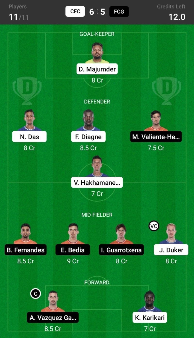 Chennaiyin FC vs FC Goa Dream11 Fantasy Suggestions