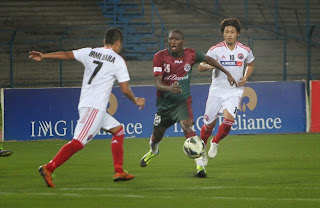 It was the home side that got the first goal from the very first chance of the match. In the 5th minute of the game, Lajong FC defender Jibon Singh and Mohun Bagan midfielder Katsumi Yusa found themselves in an ugly tangle inside the box before Pritam Kotal took the ball off them and put in a chipped cross which was successfully converted by Pankaj Moula just outside the 6 yard box. The goal lifted the spirits of the Mariners who started the game without the experienced Odafe Okolie and Nigerian defender Echezona.