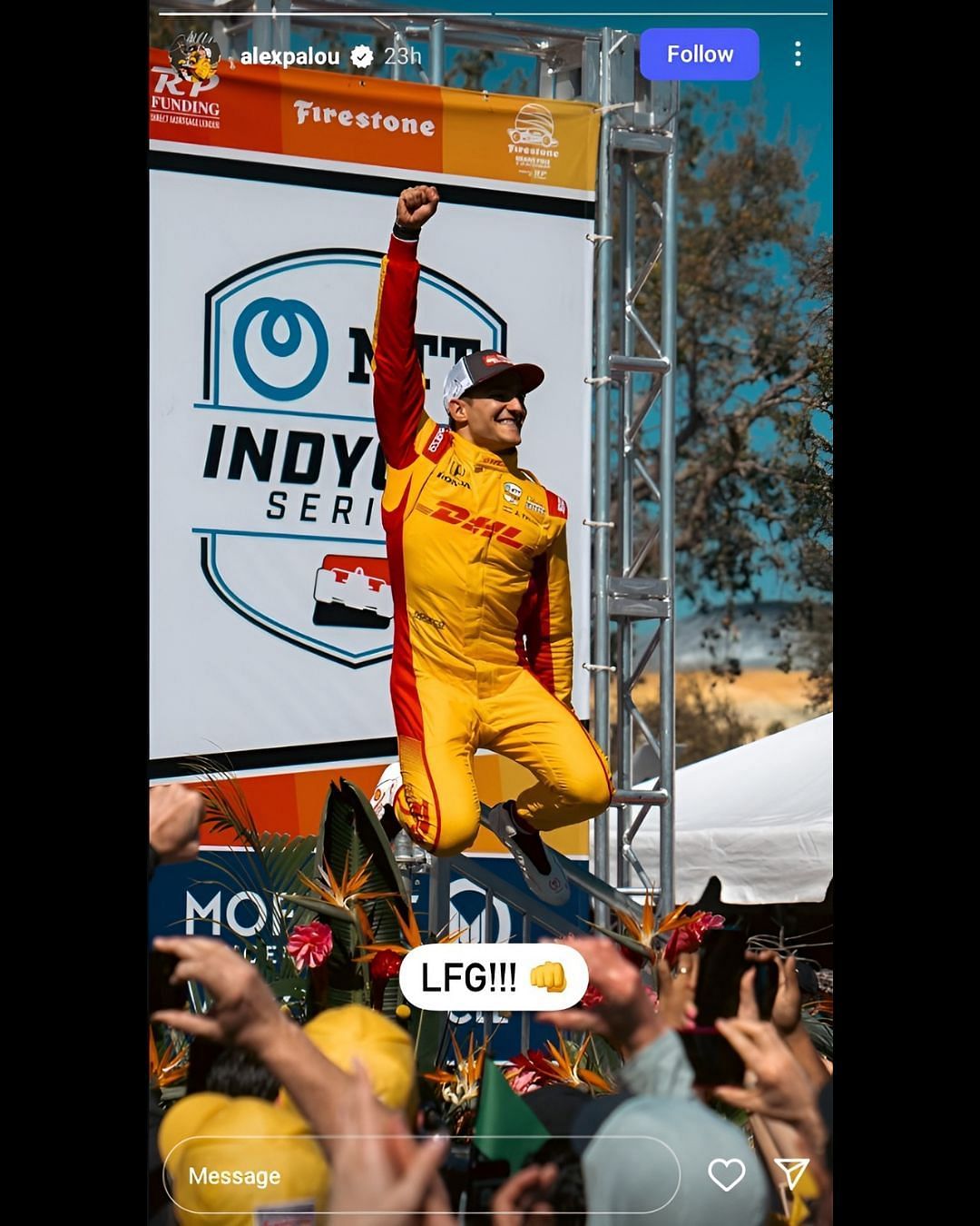To celebrate his win, Palou took to his Instagram account and posted a story with the caption 'LFG!!!👊':