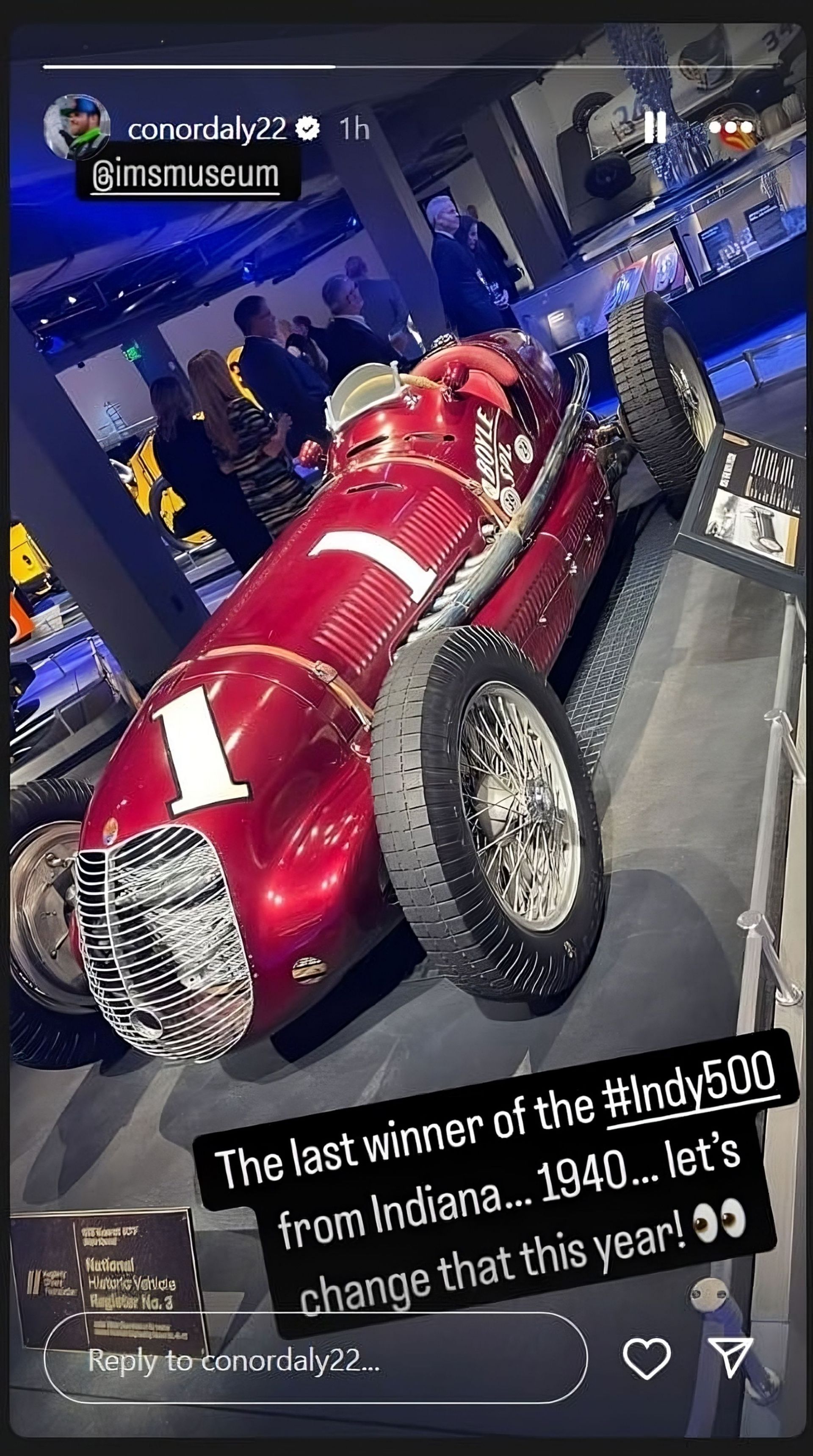 The 12th-year IndyCar veteran (part-time and full-time seasons combined) visited the new IMS Museum and shared a photo of Wilbur Shaw's 1940 Indy 500 winning car on his Instagram story and wrote: