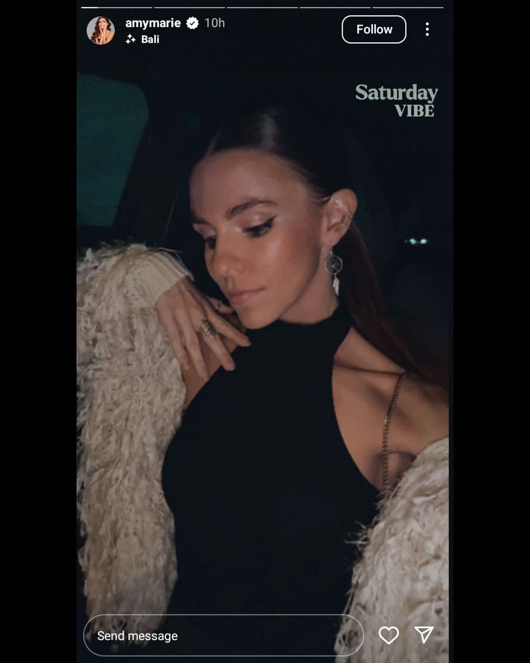 On Sunday, Amymarie Gaertner posted a picture of her outfit on her Instagram story with a sticker mentioning 'Saturday Vibe'.