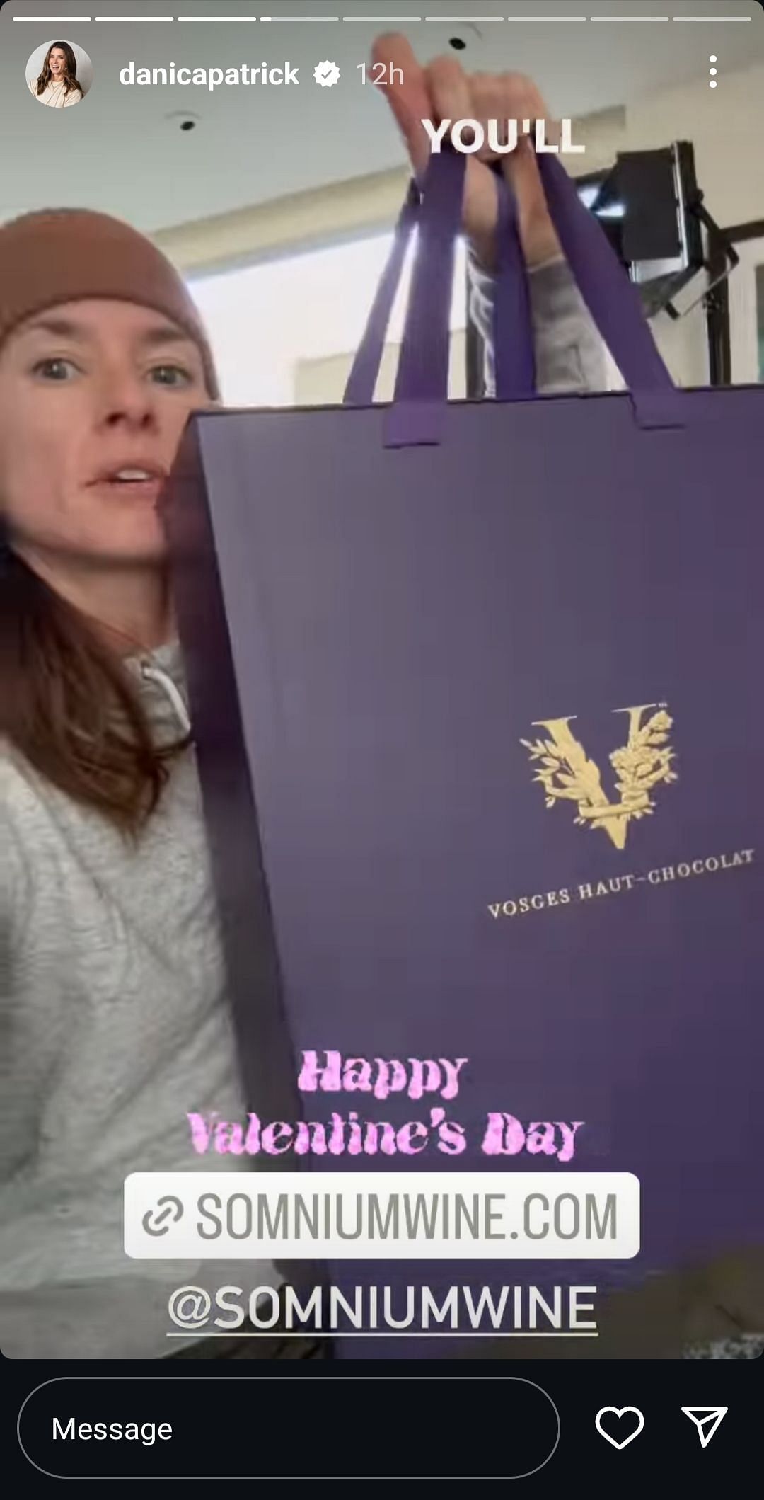 Former IndyCar and NASCAR driver Danica Patrick took to her Instagram handle on Monday to advertise a special Valentine's Day gift hamper. The hamper comes in collaboration with her line of wine, Somnium, and chocolate-making brand Vosges Haut-Chocolat.