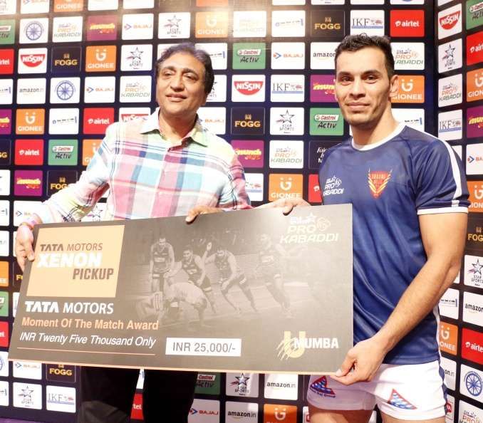 The all-rounder’s stupendous efforts came alive at home when Dabang Delhi took on the eventual champions Patna Pirates. Thanks to his aggressive tactics both in raiding and defending that contributed 11 points, Delhi came close to toppling the mighty Pirates for the second time, but narrowly lost 31-32. His brilliant thinking as a captain prevented his team from getting all out in that contest till the 29th minute.