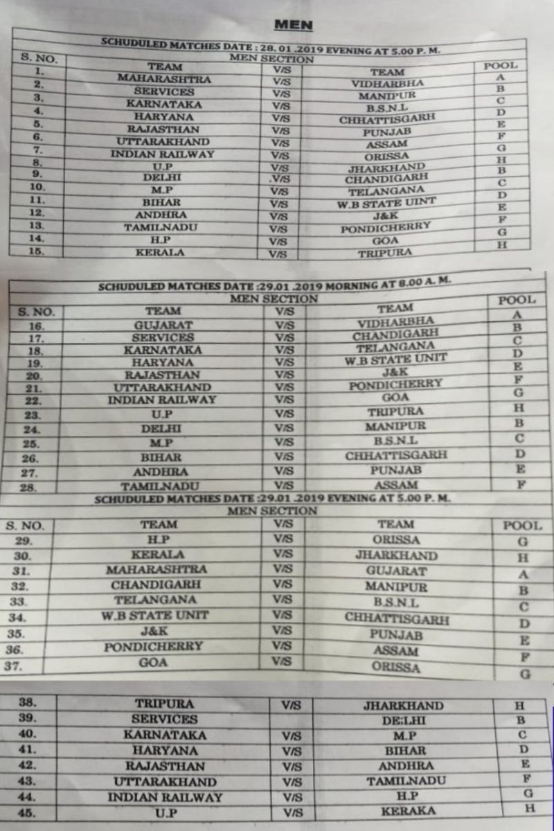Here is the schedule for 66th Senior National Kabaddi Championship: