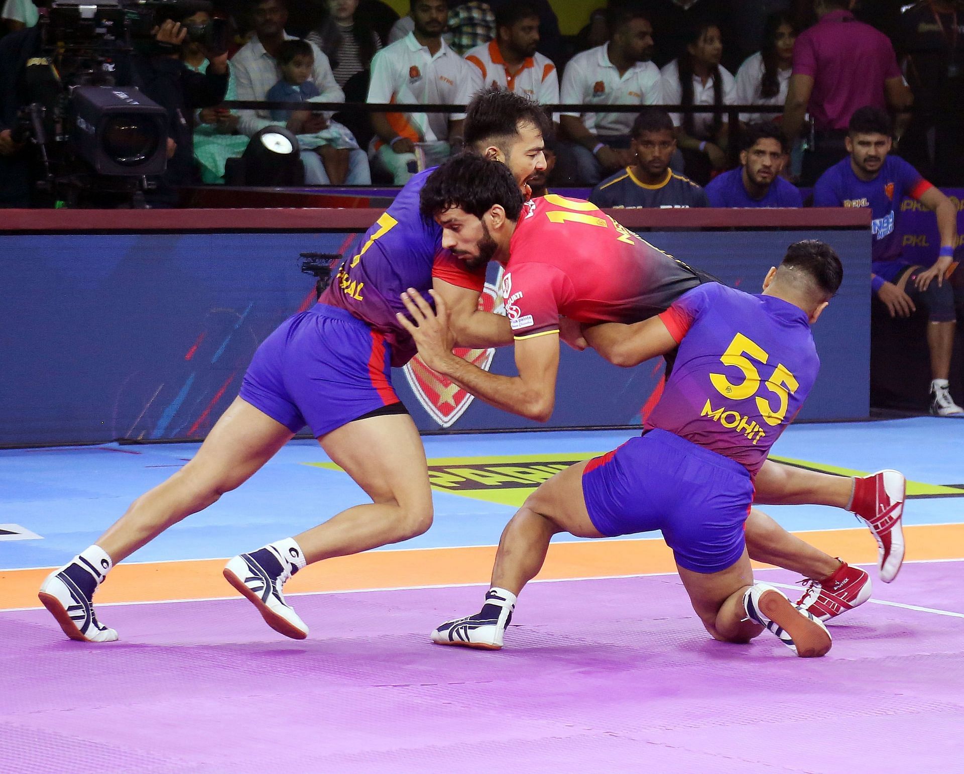 Bharat Hooda has been a standout performer for the Bengaluru Bulls in the past three games. Accumulating 23 raid points from 19 successful raids, he achieved a Super raid and a Super 10. He showcased his versatility with two successful tackles as well.