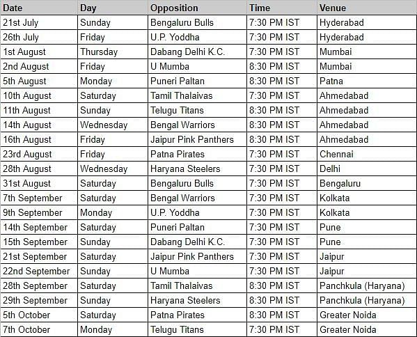 The home leg of the Fortunegiants is scheduled to take place during the period between 10th August and 16th August at The Arena by Transstadia in Ahmedabad.