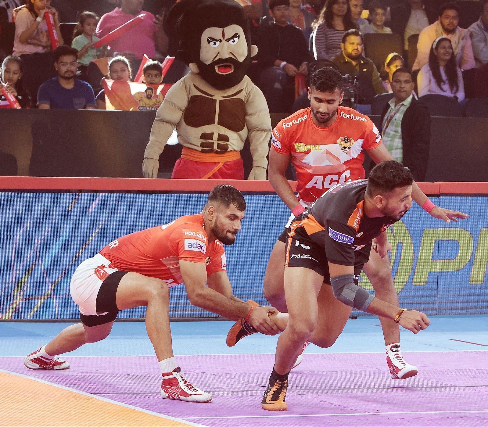 Rakesh was the top raider for Gujarat Giants with a Super 10 while in the defense, Sombir claimed a High 5.