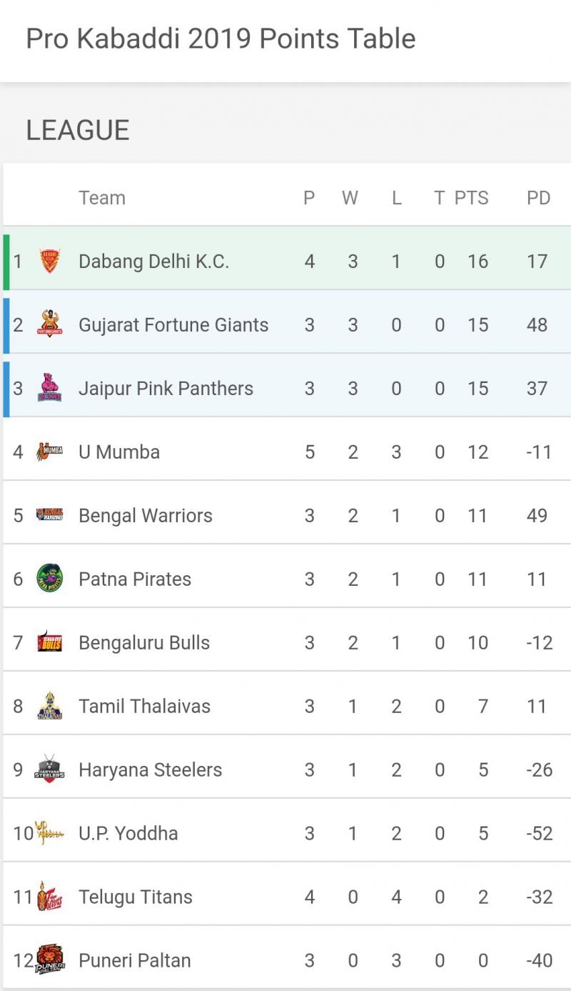 Despite losing the match, Dabang Delhi K.C. climbed to the top position of the points table as they picked up one point from this match. On the other hand, Gujarat's win has taken them to the second spot on the standings.
