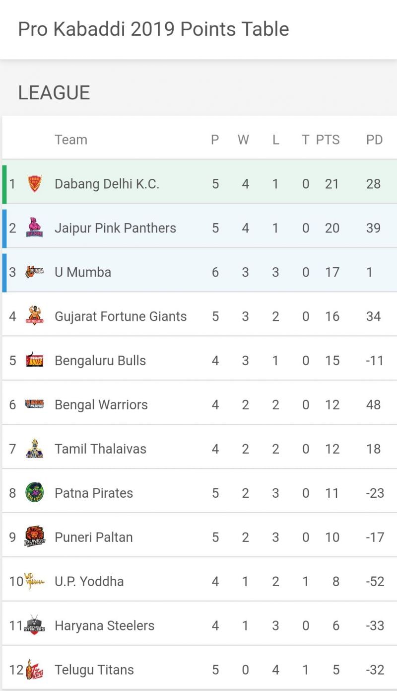 Here is the updated points table of VIVO PKL 2019 after the two games of the day -
