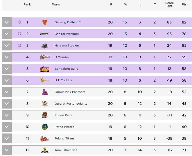 Pro Kabaddi 2019 is slowing inching towards the business stages as only a handful of matches remain in the league stage. Three teams namely Dabang Delhi K.C., Bengal Warriors and Haryana Steelers have sealed their place in the playoffs while the Tamil Thalaivas, Puneri Paltan, Gujarat Fortune Giants, and Patna Pirates are out of the competition.