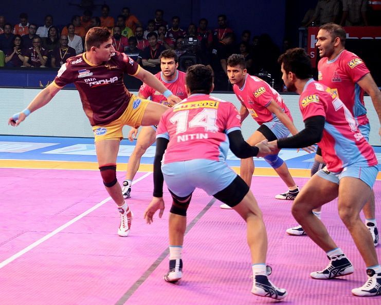 It almost went all wrong for Jasvir when Sagar Krishna and Hadi Tajik, the only two UP men on court, seemed to have inflicted a super tackle on him. The referee, however, was up to the task and handed Jaipur a point as Krishna had pulled Singh by his shirt, enough for the referee to send him out for foul play.