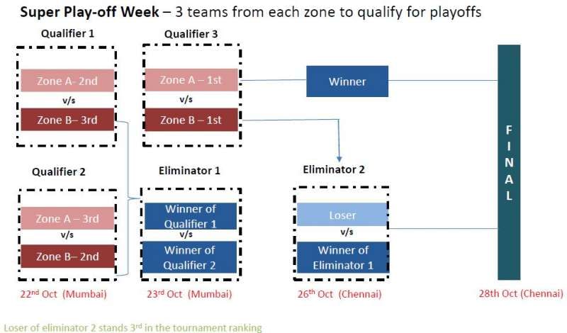 The Playoffs will have six matches and will run from October 22-28. It will feature the top 3 teams from each zone, thus rewarding consistent performance.