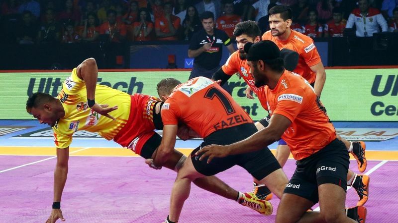 Both teams then traded raids as Gujarat looked to defend with only one man, to ensure they do not lose many points at one go and keep the lead.