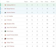 Dabang Delhi K.C. find themselves at the top of the points table despite their defeat while the Bengal Warriors' score difference has taken a dip after their loss against the Patna Pirates while the latter finished at the eighth position with 51 points, a similar number of points to the Gujarat Fortune Giants.
