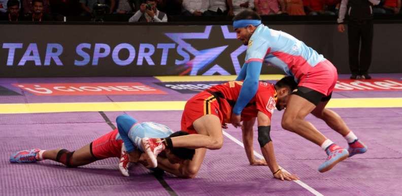 With a stunning 24-22 win over home side Bengaluru Bulls, Jaipur Pink Panthers reached the top of the Star Sports Pro Kabaddi Season 4 table. Defender Amit Hooda blunted Season 3 MVP Rohit Kumar single-handedly while Jasvir Singh top scored with 5 points and dictated the tempo of the game.