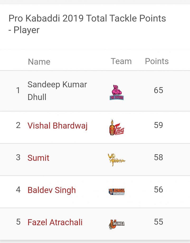 There is no change in the top 5 of the defenders' leaderboard as very few tackle points were scored tonight. Sandeep Dhull and Vishal Bhardwaj both will be in action tomorrow so expect some changes in this list.