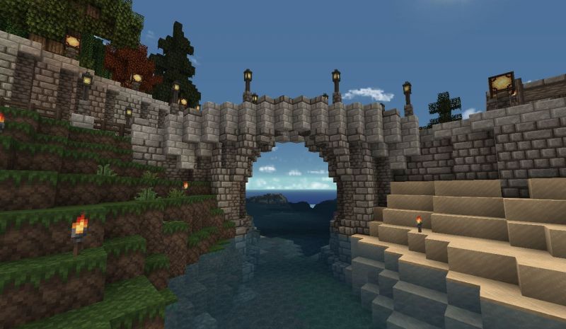 The bridge design seen above is extremely breathtaking. While it doesn’t use much block variation, the sheer detail and block depth make the pillars look massively satisfying.