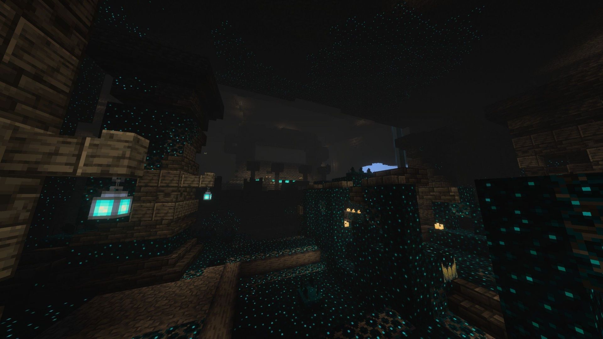 Ancient City is a dangerous structure that only generates in the Deep Dark biome, which is a mysterious underground region plagued by sculk blocks. In regular Minecraft graphics, it was clear that regular sculk blocks had a few teal-colored pixels. With Vibrant Visuals, all these teal-colored pixels on sculk blocks glow because of emissive textures.