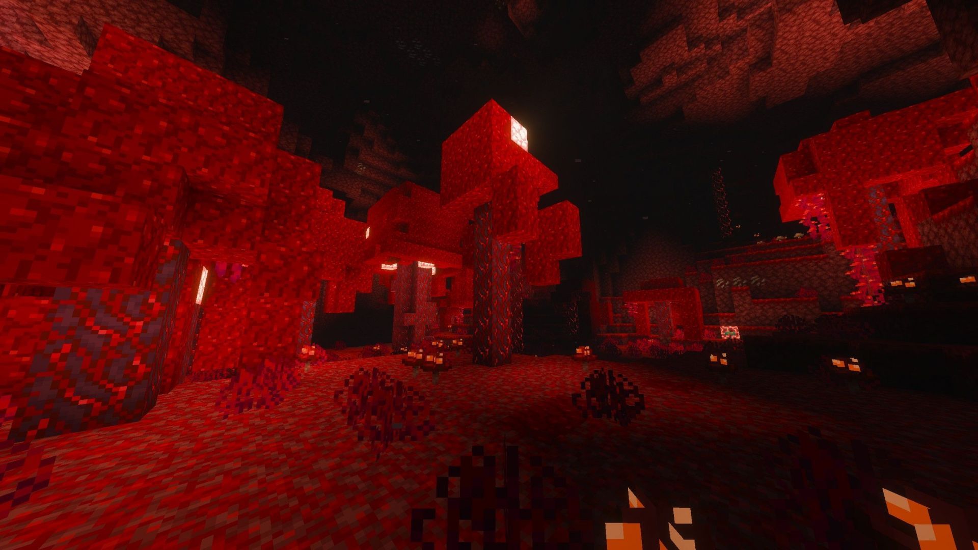 The point light technology and emissive glowing textures offered through Vibrant Visuals shine in this Nether realm.