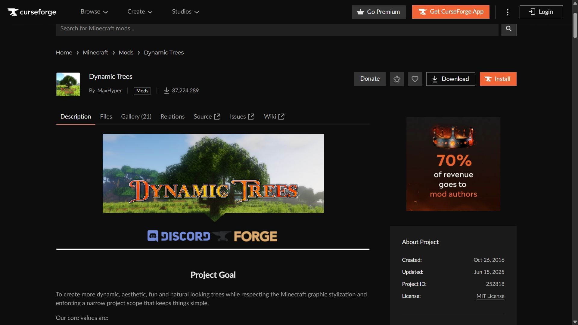 - Head to the CurseForge website and search for the Dynamic Trees mod.