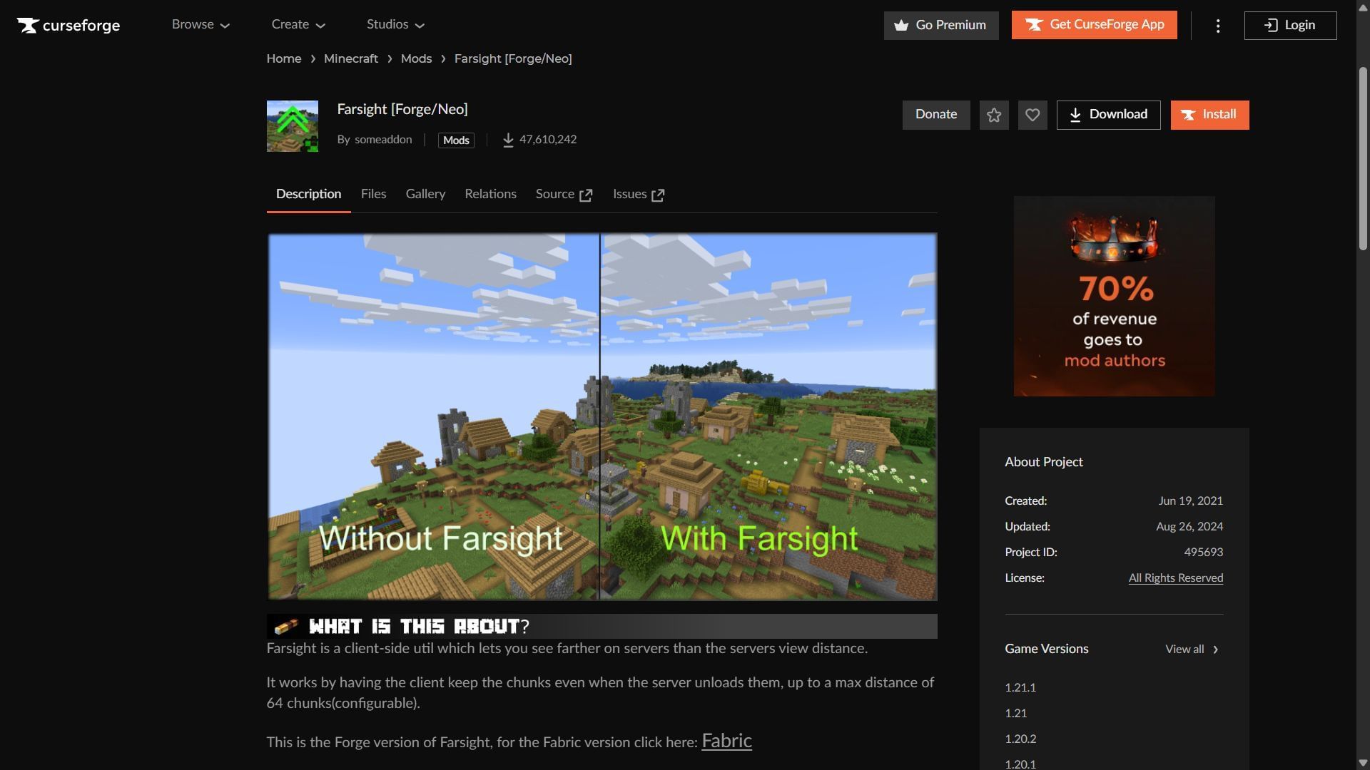 - Head to the CurseForge website and search for the Farsight mod.