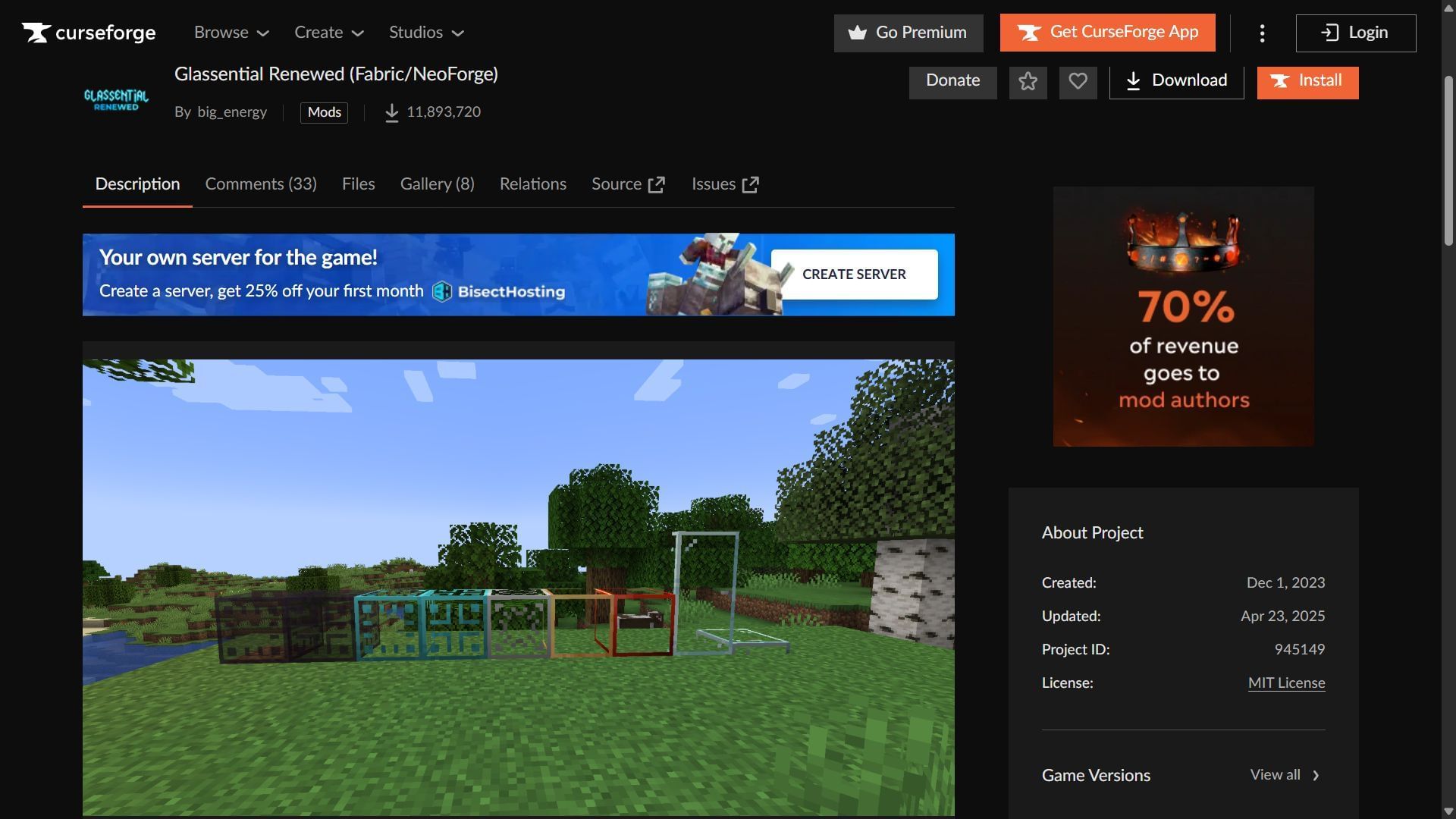 - Head to the CurseForge website and search for the Glassential Renewed mod.