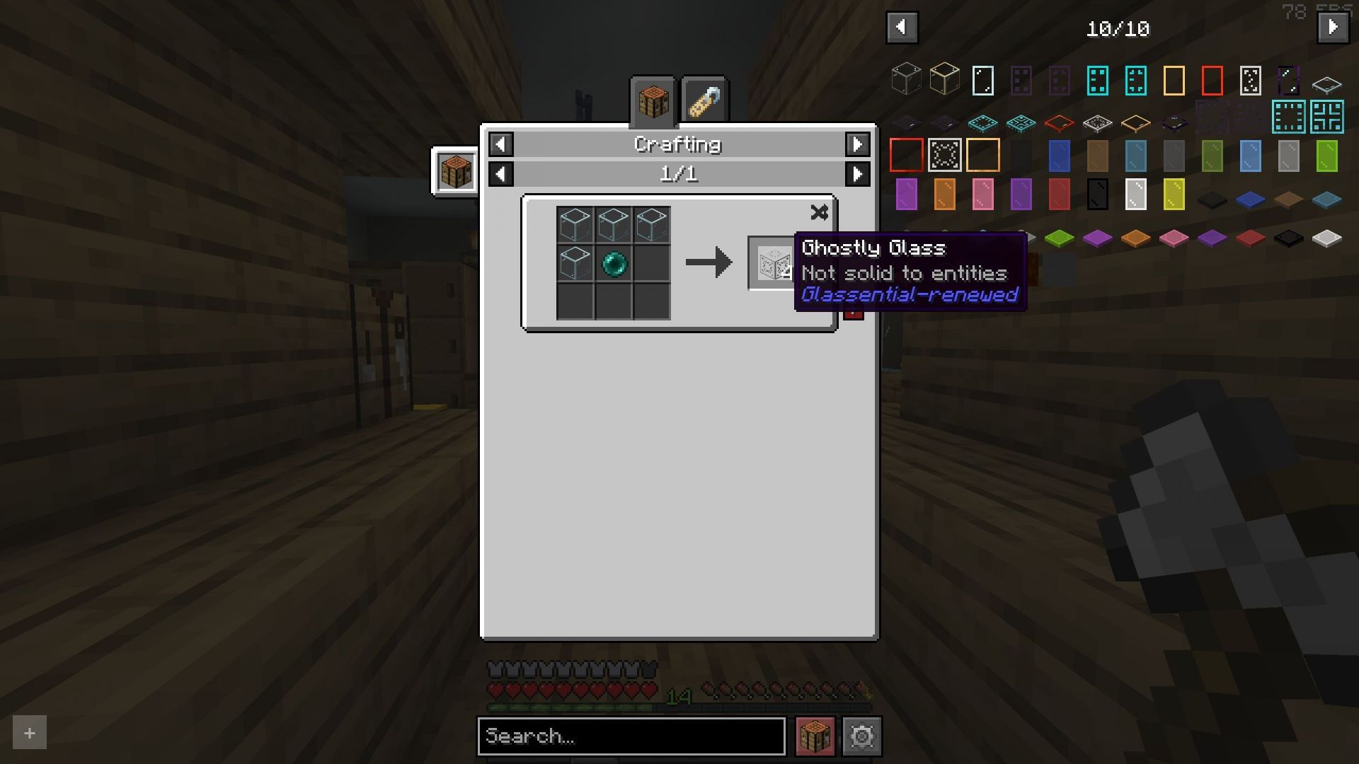 - Also, download Just Enough Items or Roughly Enough Items for the same game version to see crafting recipes for new glass blocks.