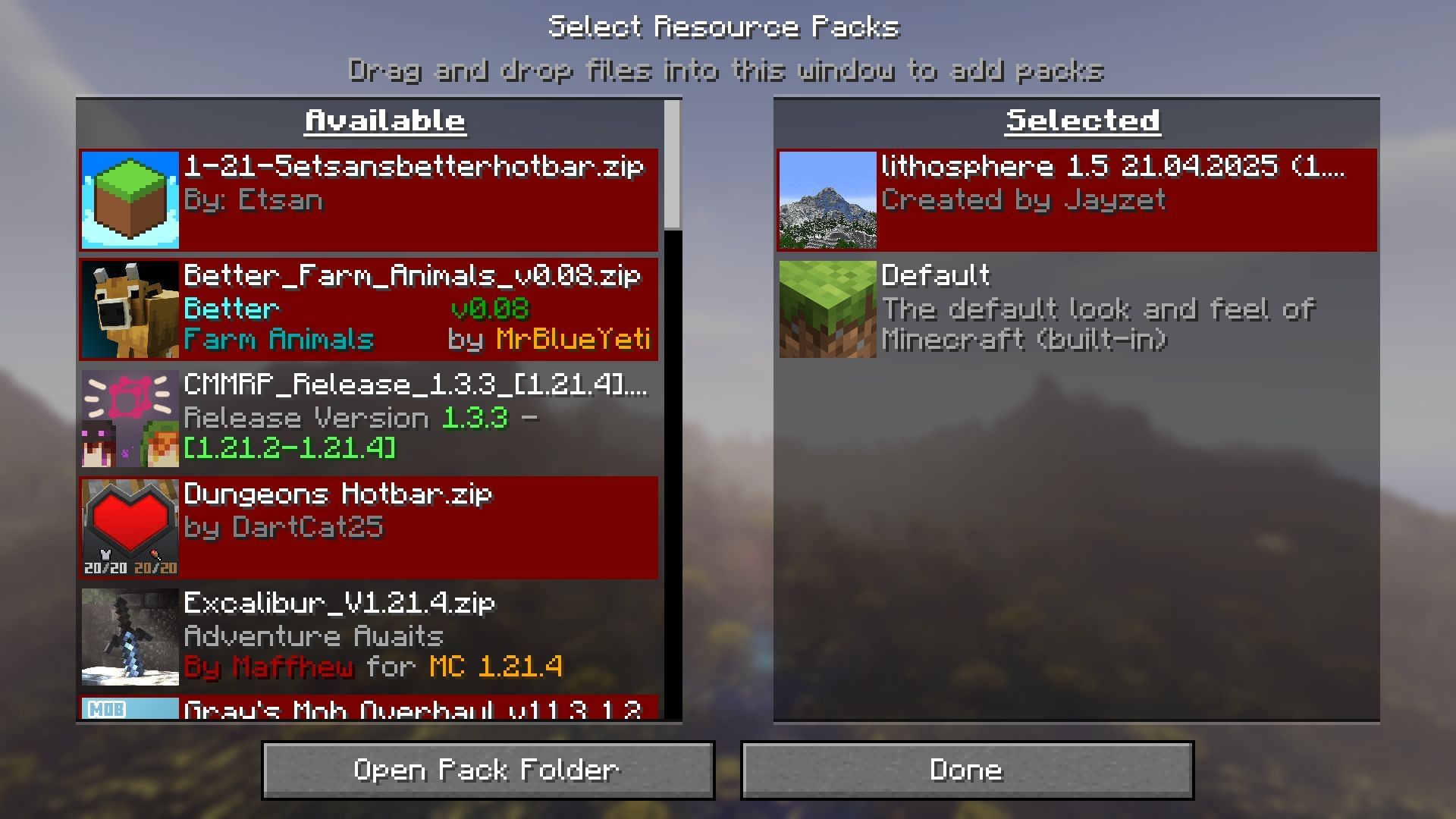 - Go back to Minecraft and look for the Lithosphere data pack in the list of available packs.