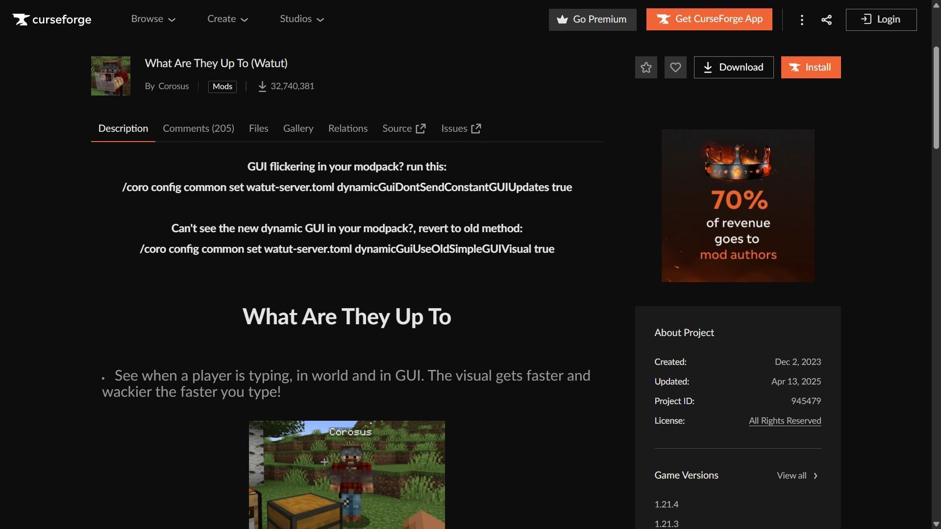 - Head to the CurseForge website and search for the What Are They Up To mod.