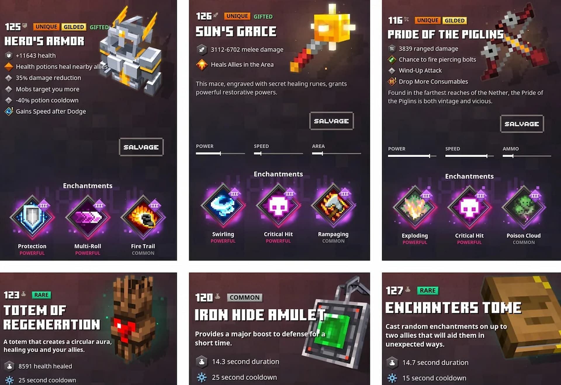 Minecraft Dungeons has a plethora of new features in the game. There are a lot of unique weapons, armor, artifacts, and enchantments players can use. These combinations can be used to create builds with unique strengths and weaknesses. Each composition can cater to a unique scenario.