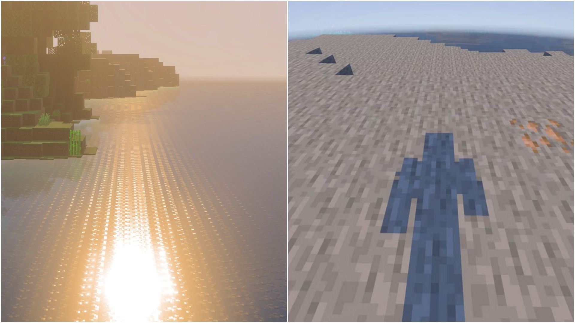 In the picture above, it is clearly visible that the reflections from the water and the shadows are pixelated. Since the water block texture is not changed, the reflections from it make it look quite unique.