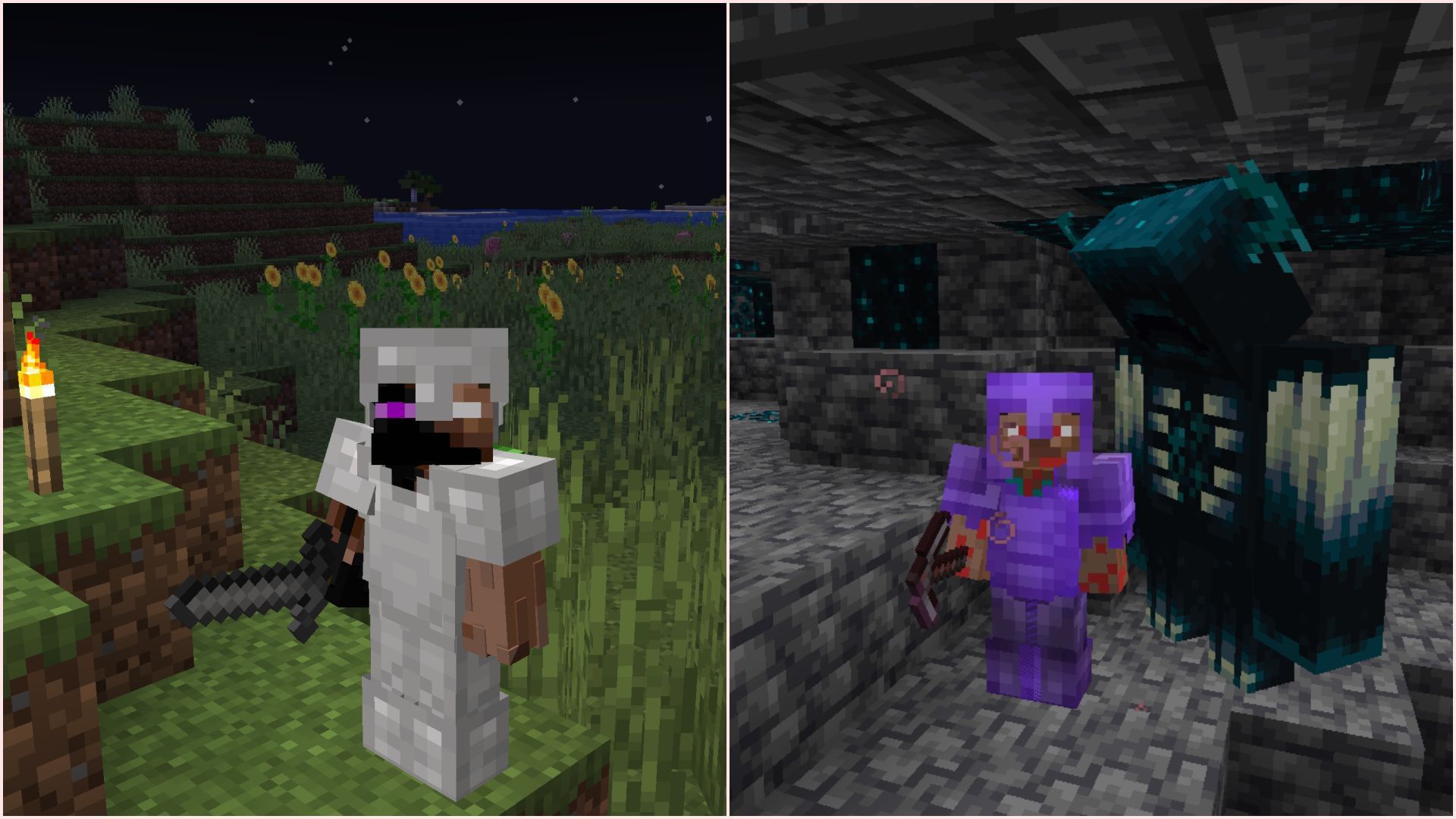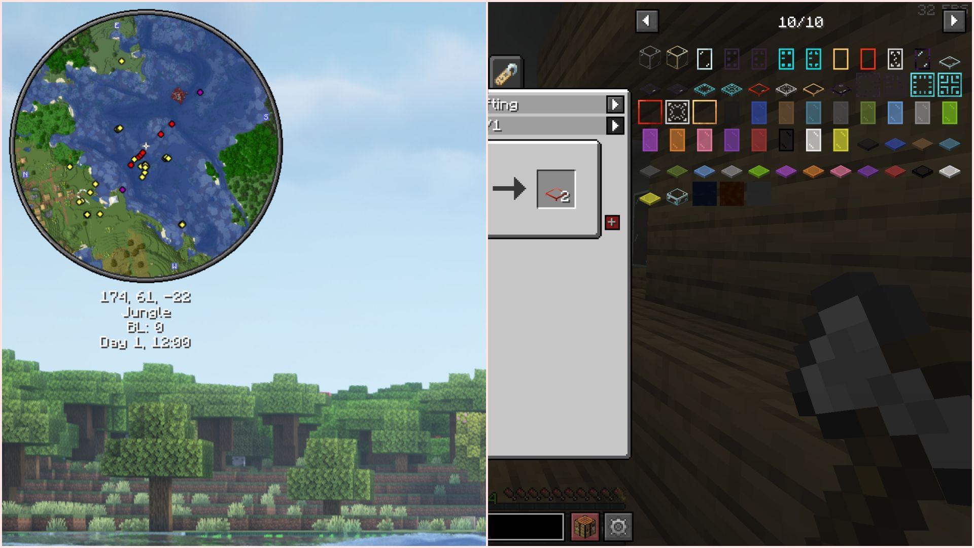The picture above shows two kinds of mods that do not add any new blocks, items, structures, or mobs to the game, but they drastically enhance the original gameplay.