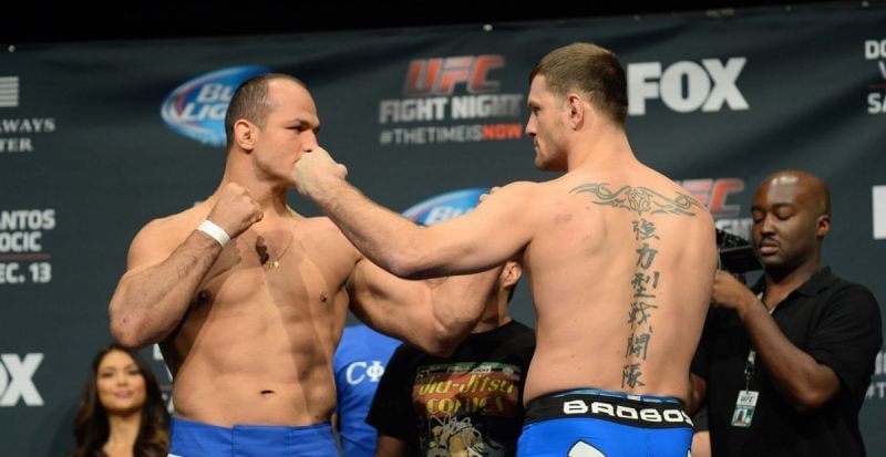 Back in December of 2014, Dos Santos returned from a long injury layoff, after a brutal TKO loss in his trilogy fight against Cain Velasquez. At that time, Miocic was a relatively unproven Heavyweight at the elite level, and most experts predicted that the only way Miocic beats Junior dos Santos is if the latter's body has been compromised by the vicious beatings he took at the hands of Velasquez in their second and third fights.