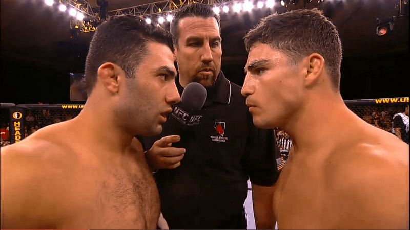 The action continued in the second round, with both men going back-and-forth in both striking and grappling exchanges; Parisyan managed a slam takedown at one point only for Sanchez to reverse the Armenian judoka and take a dominant position of his own. Essentially, it was getting hard to decide exactly who was on top in the fight.