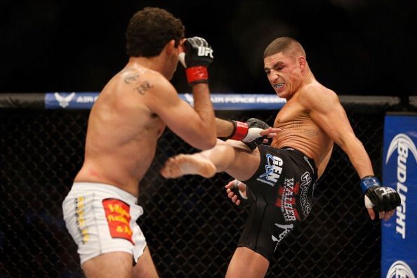 The difference, in the end, was Sanchez’s ability to achieve top position and keep Diaz grounded, where he could unleash his then-famed ground-and-pound, just as he’d promised during the pre-fight promos. In the end, despite suffering a deep cut over his eye, ‘The Nightmare’ was awarded the biggest win of his career at the time – with Diaz being fed a large slice of humble pie.