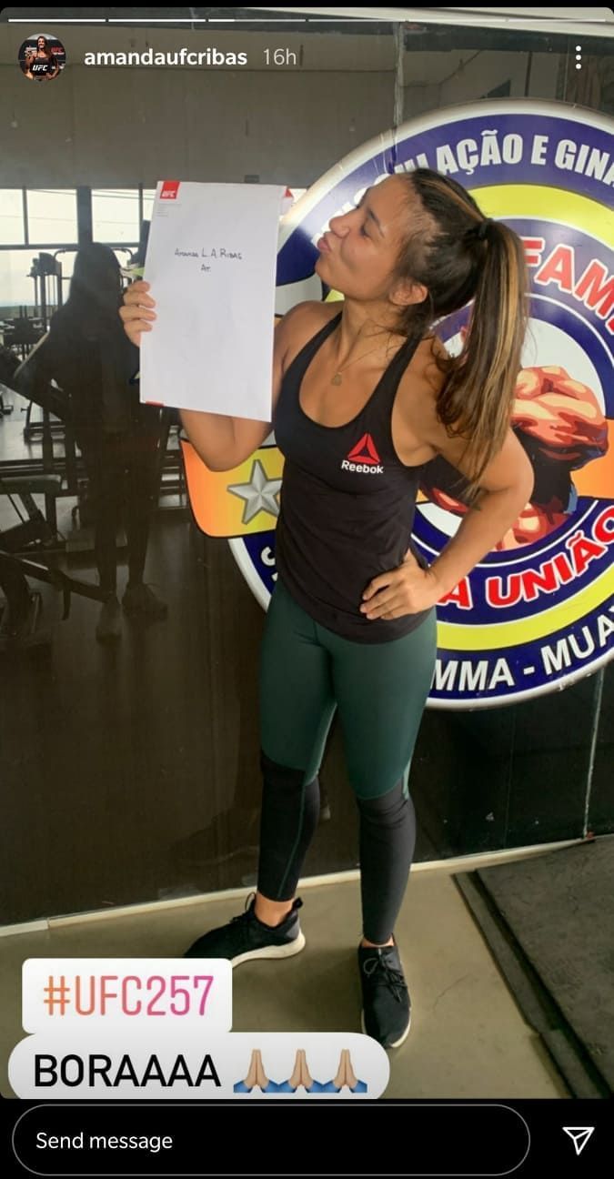 Amanda Ribas took to Instagram to announce that she's officially signed the contract for fighting at UFC 257. She posed with the signed contract and shared her excitement about the upcoming fight.