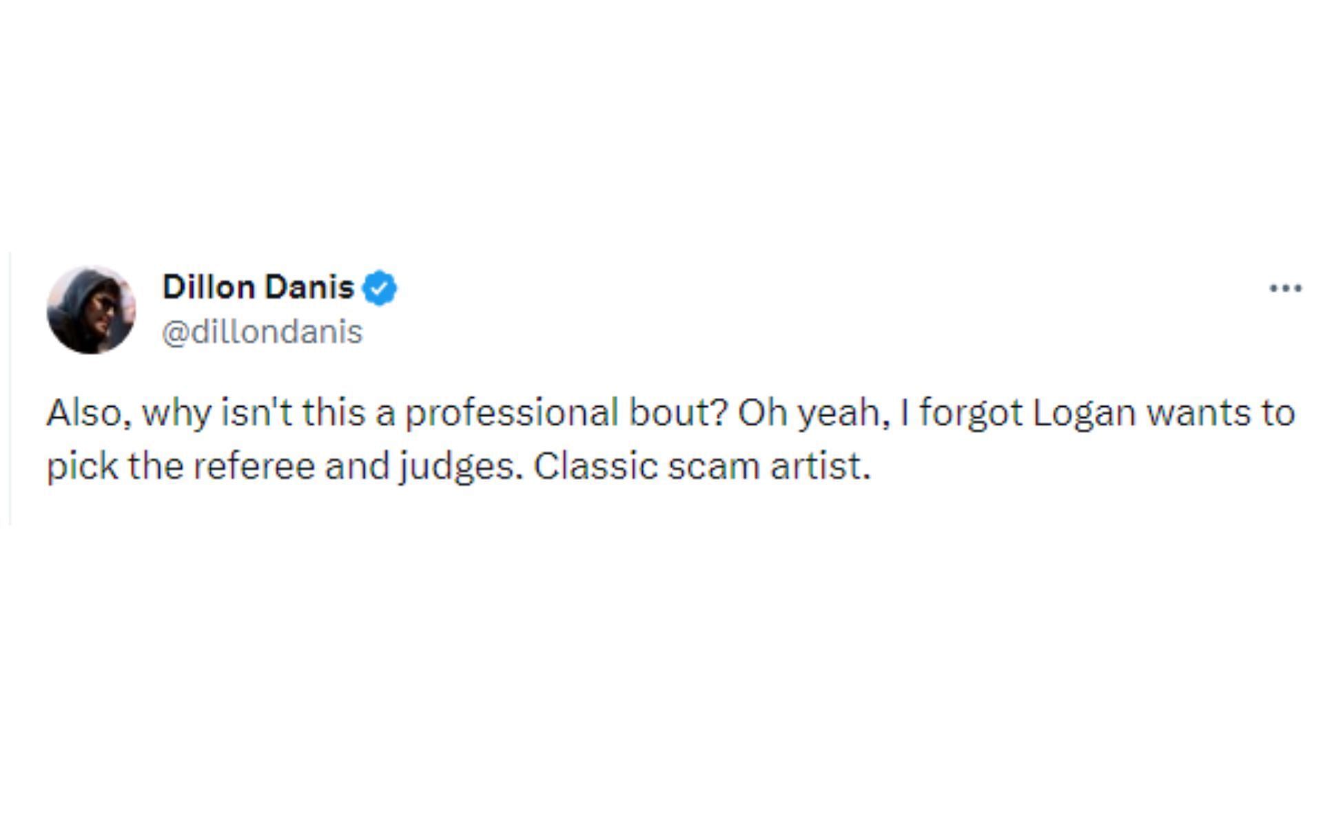 "Also, why isn't this a professional bout? Oh yeah, I forgot Logan wants to pick the referee and judges. Classic scam artist."