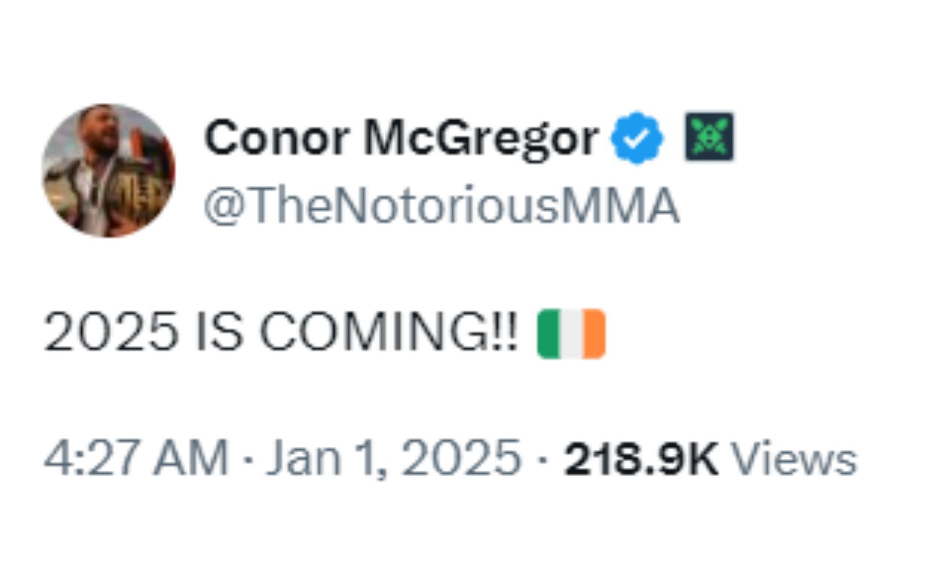 McGregor recently took to his social media and released a statement for the New Year's Day, hinting at his possible comeback: