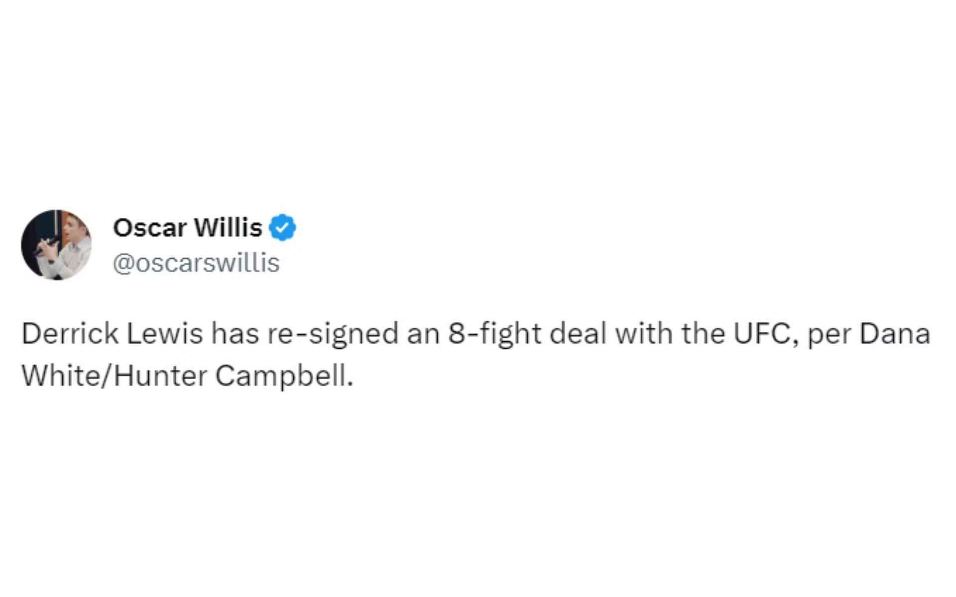 Furthermore, per a tweet by The Mac Life's Oscar Willis, Lewis has signed an eight-fight deal with the promotion.