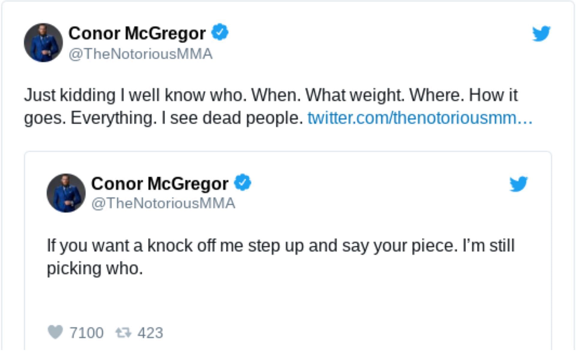 The UFC star has suggested that he already knows who he'd like to fight upon his highly anticipated return to the octagon. The Irishman recently took to Twitter with multiple tweets. While no fighter has been named specifically, McGregor shared that he knows exactly who it will be and when.