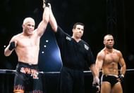 Despite Shamrock’s fearsome reputation, it was Ortiz who came out on top of the pivotal contest. This time he displayed improved kickboxing, battering Shamrock standing before using his trademark takedowns and ground-and-pound. After the third round ended, Ken was unable to continue.