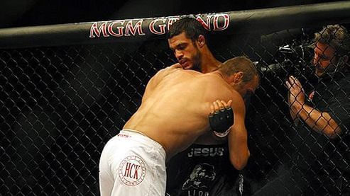 Seconds later referee John McCarthy called time, and when Couture’s left eye was examined by the doctor, it became clear what’d happened; Vitor hadn’t poked him in the eye, instead, the stitching on his glove had caught Couture’s eyelid as the punch missed, slicing it wide open. It was quickly established that Couture was unable to continue – and as the cut had been caused by a legal blow, somehow, Belfort was declared the winner by TKO – and the new UFC Light-Heavyweight champion.