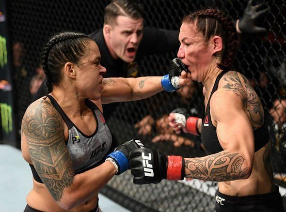 After a brief feeling-out period, Anderson threw a high kick which largely missed, but one of her toes caught Zingano in her right eye. Cat instantly turned away and stopped fighting, and referee Marc Goddard had to step in to stop the fight.