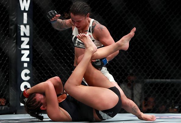 During her initial run as a Bantamweight – where she always looked somewhat undersized – the idea that ‘Bata Estaca’ could develop into an elite fighter seemed a little far-fetched. Dominant wins over the likes of Rosi Sexton and Larissa Pacheco were off-set by disappointing losses to Marion Reneau and Raquel Pennington, and it seemed like her berserker-esque style would simply make her a reliable undercard action fighter.
