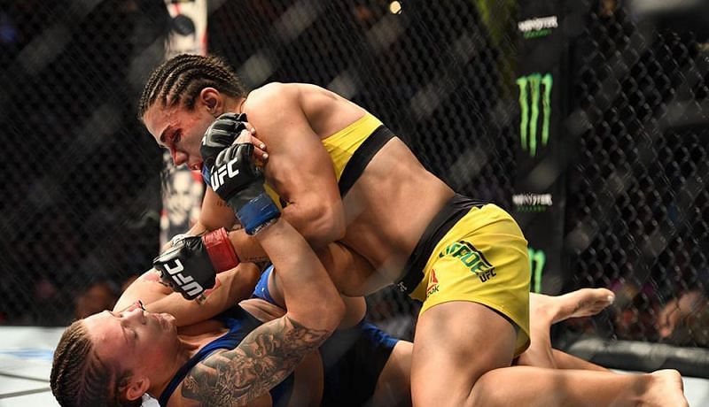 The Strawweights were in action as Jessica Andrade in her second fight at 115Ibs took on Joanne Calderwood. Andrade quickly put Calderwood down and used her greater power to cinch in a guillotine choke for the win. For, Andrade, it was proof her decision to move to Strawweight was the correct one, while for Calderwood, it was back to square one to try and pull together a win streak to put her in title contention.