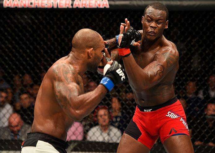 Saint Preux started the second round strong but was soon caught in a front face lock by Manuwa. Manuwa missed a few strikes before managing to land a swift headkick followed by a few inside leg kicks.