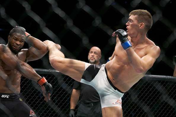 This led to Stephen changing up his usual kick-heavy approach, using his hands to fight off the stocky wrestler’s blitzes as well as takedown attempts, not giving him the opportunity to take him down off of a naked kick. For the rest of the fight, Wonderboy used his kicks sparingly and mostly hidden behind punches or feints.