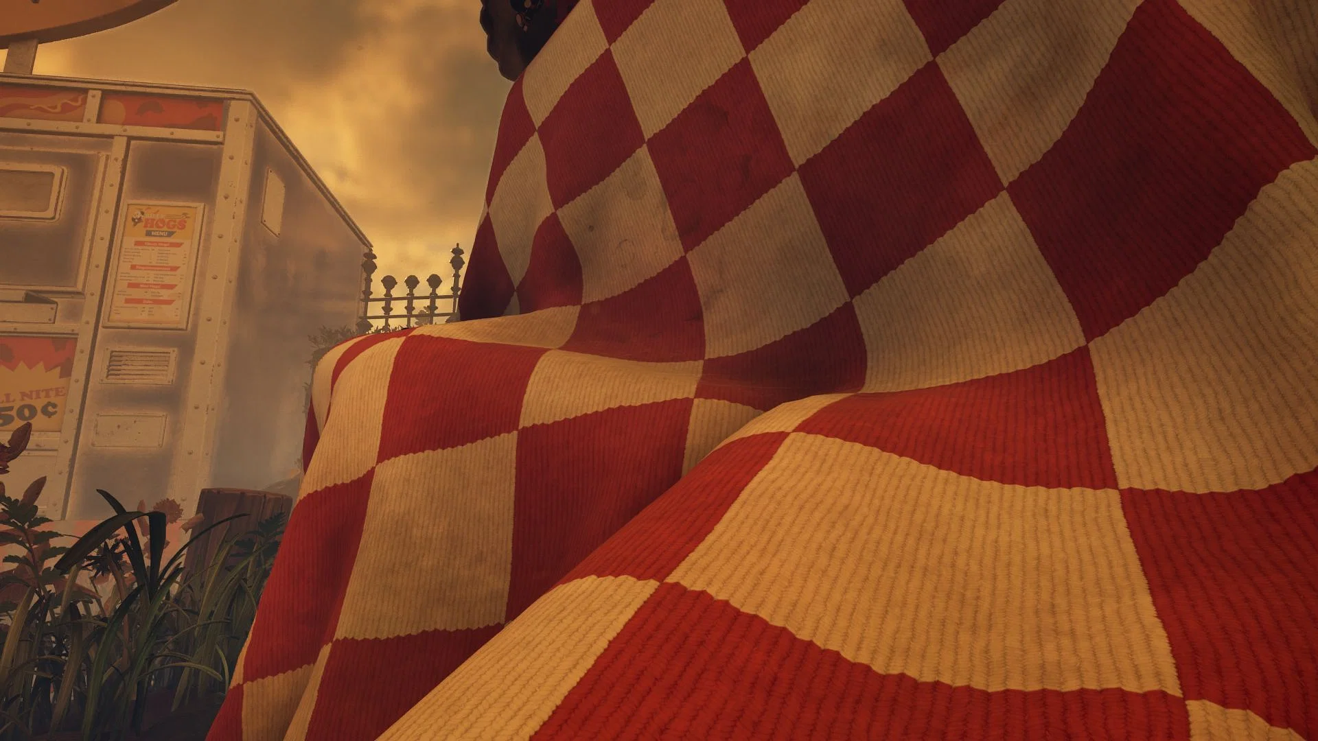 The tablecloth is steeper towards the right side, and there is a ledge on the left side. Continue through the ledge to reach the bench of the Picnic Table. The bench will have multiple Lawn Mites and spiders.