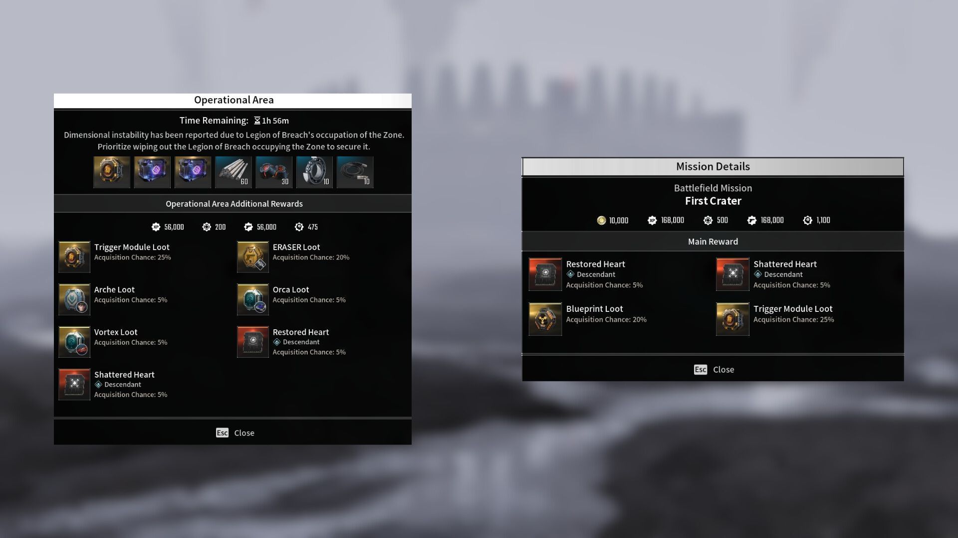 Note: Completing the Operational Area missions has a higher chance of rewarding additional loot.